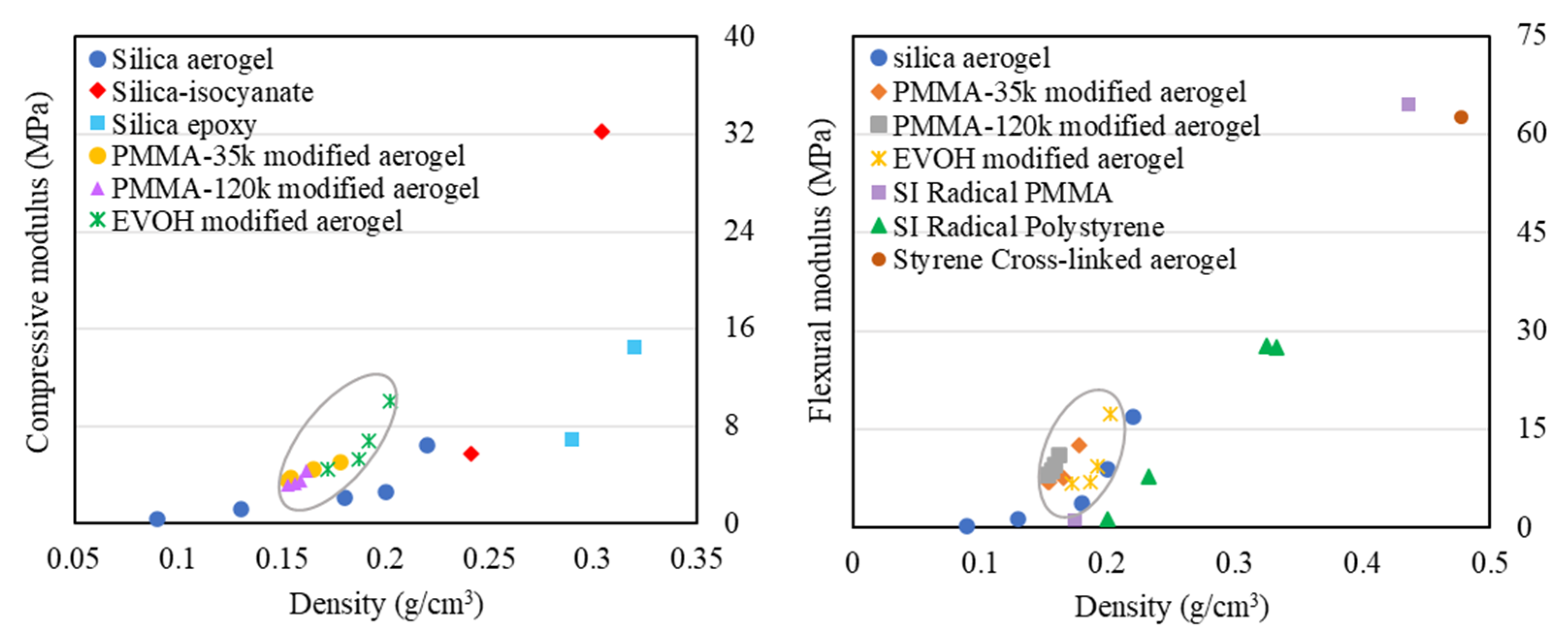 - Parmenter, K.E.; Milstein, F. Mechanical Properties of Silica Aerogels. J. Non-Cryst. Solids 1998, 223, 179–189. [Google Scholar] [CrossRef]