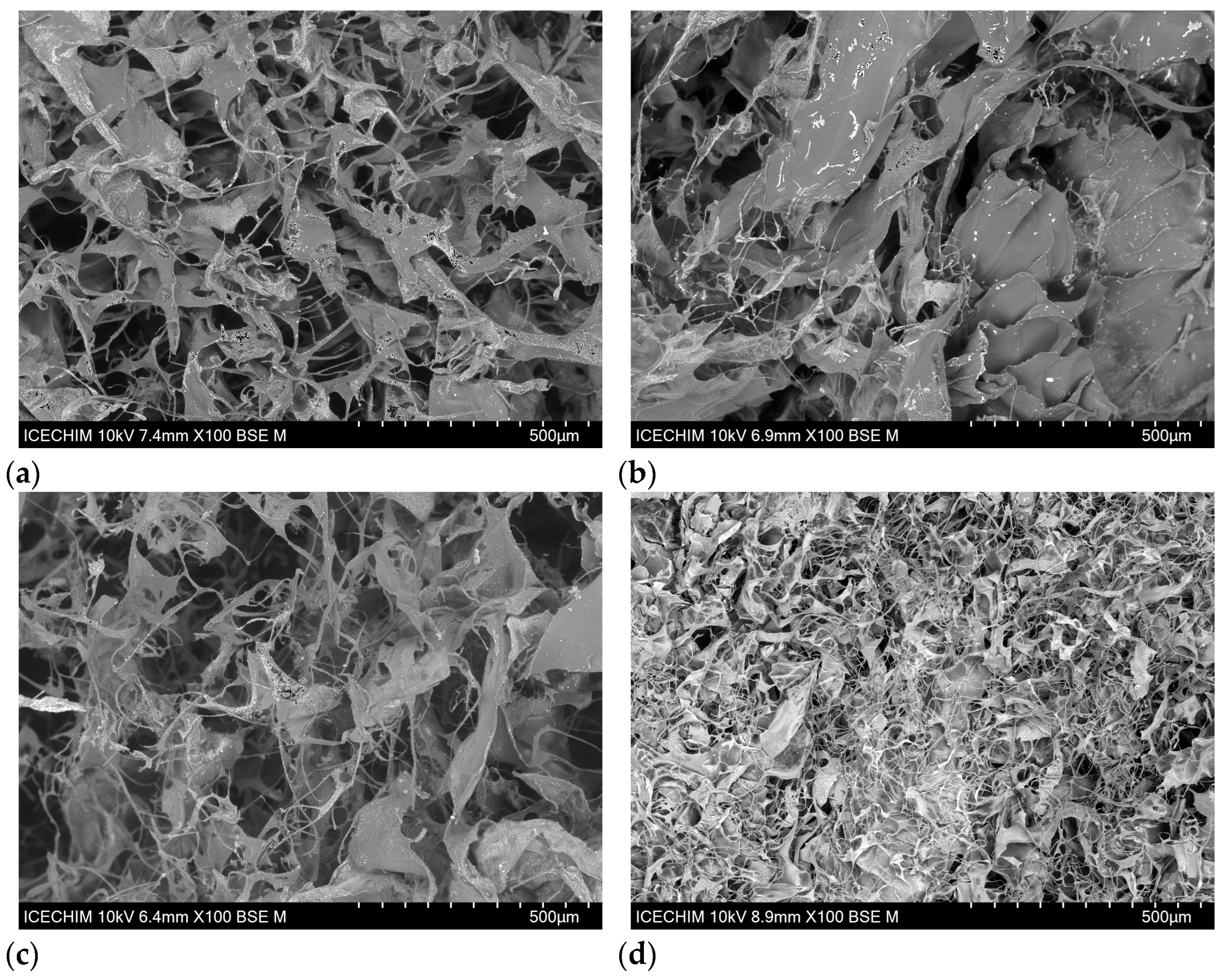 4.2.5. Structural Analysis of Collagen Porous Matrices