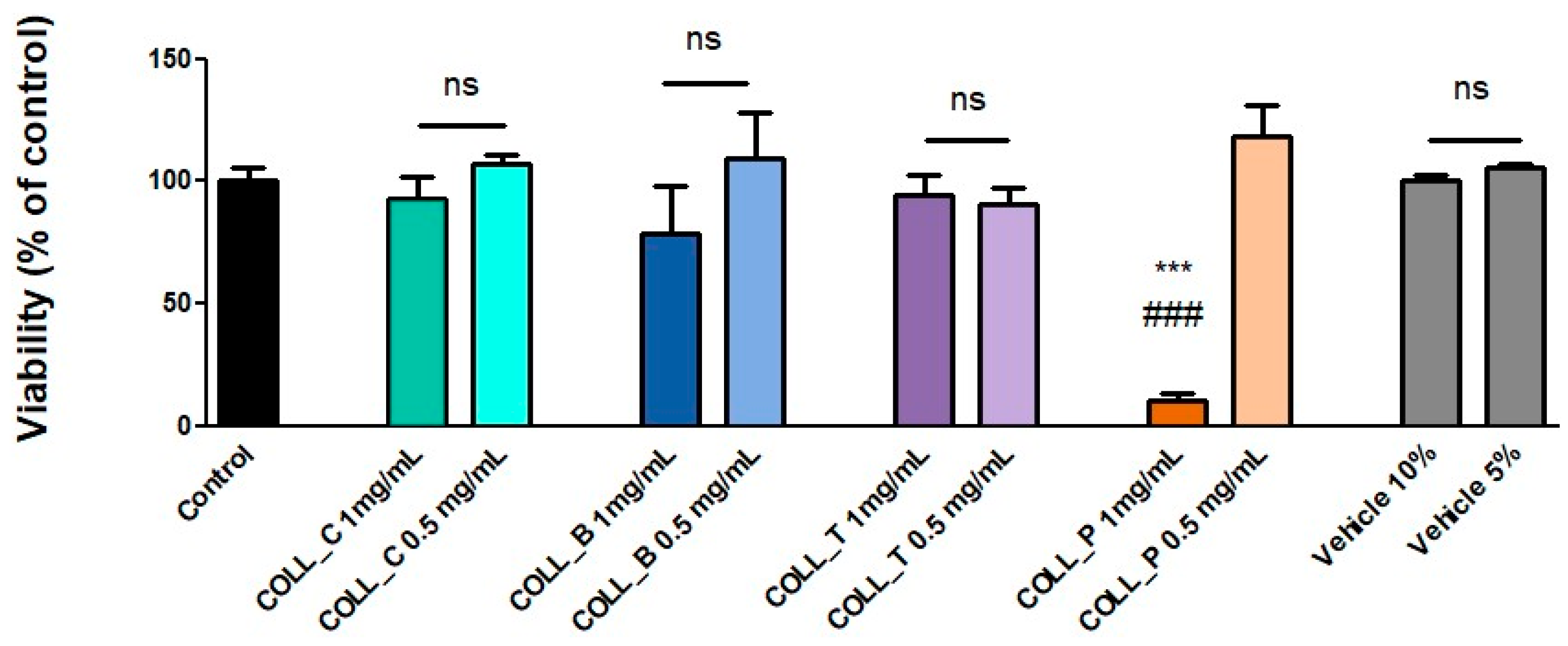 2.1. Characterization of Collagen Gels Extracted from Different Sources