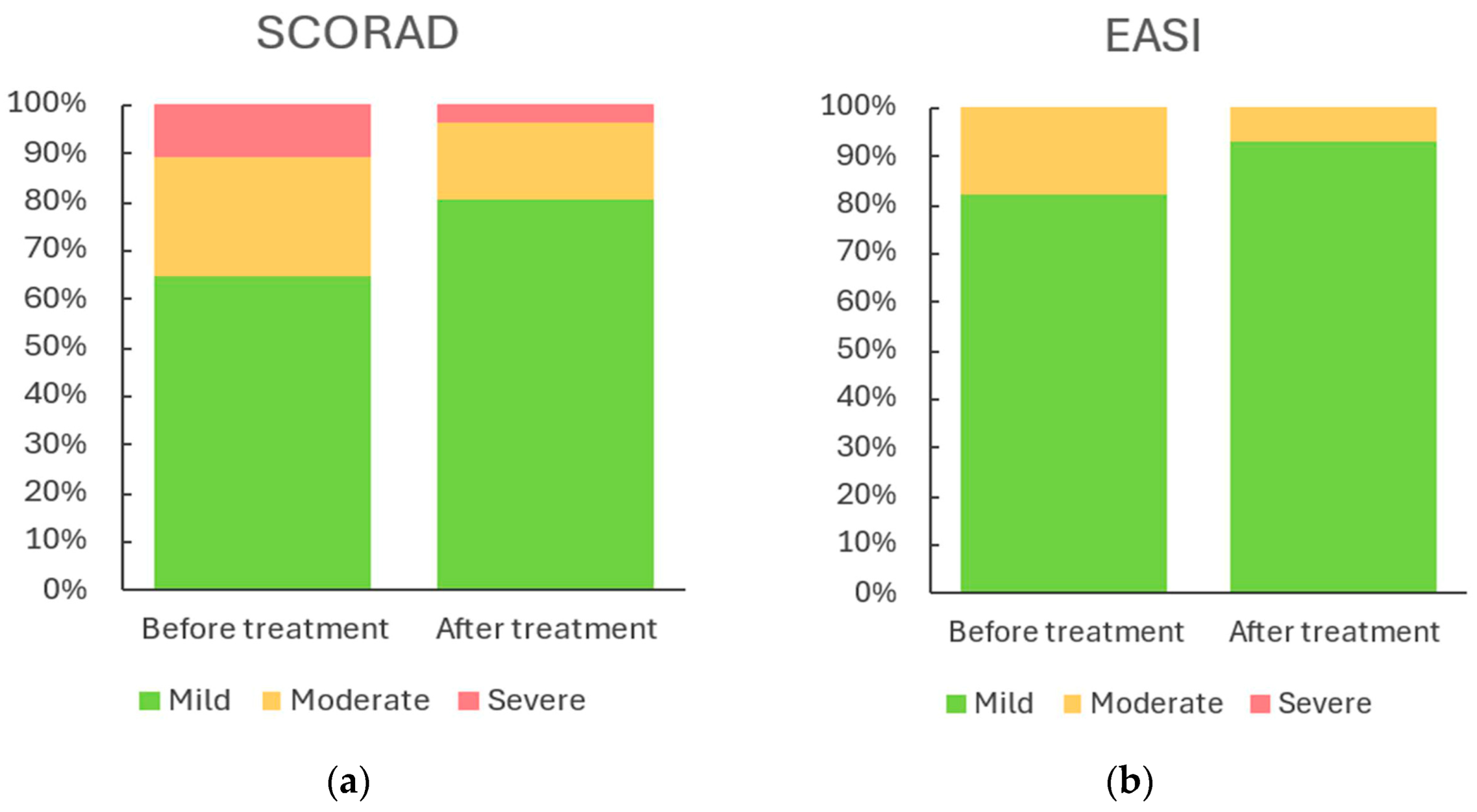 | SCORAD | Mild | 37 (64.9%) | 46 (80.7%) |