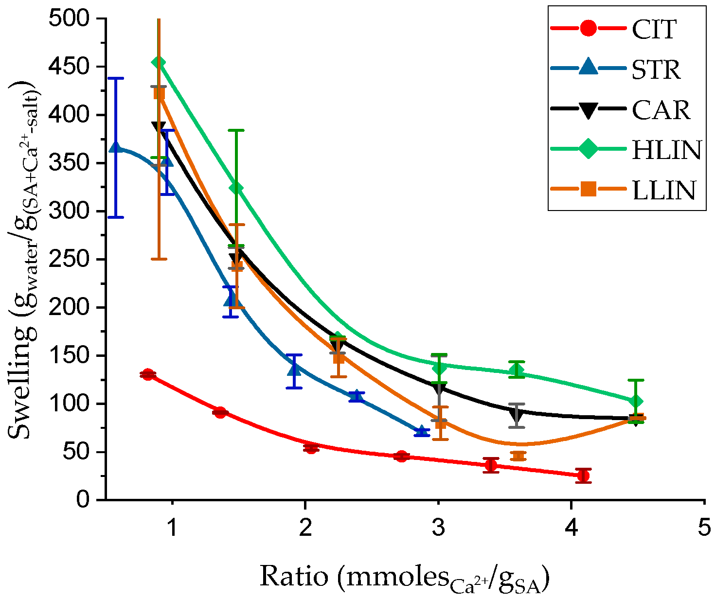 - Savić Gajić, I.M.; Savić, I.M.; Svirčev, Z. Preparation and Characterization of Alginate Hydrogels with High Water-Retaining Capacity. Polymers 2023, 15, 2592. [Google Scholar] [CrossRef]