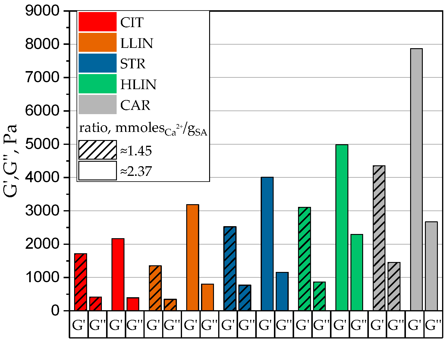 Kapatsila, S.; Taras, R.; Varchuk, D.; Nosova, N.; Varvarenko, S.; Samaryk, V. Influence of Calcium Crosslinker Form on Alginate Hydrogel Properties. Gels 2025, 11, 885. https://doi.org/10.3390/gels11110885