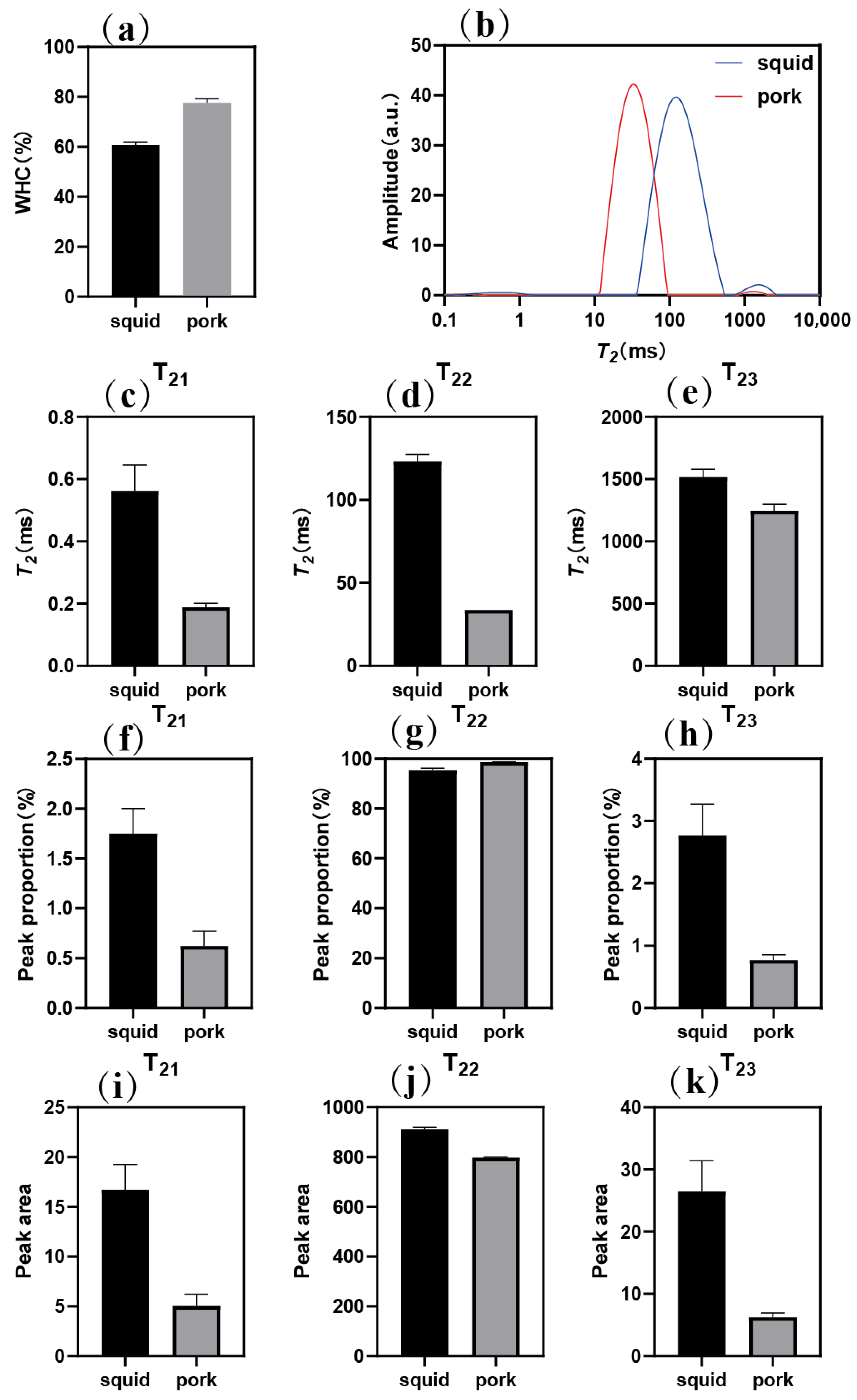 - Liu, Y.; Sun, Q.; Pan, Y.; Wei, S.; Xia, Q.; Liu, S.; Ji, H.; Deng, C.; Hao, J. Investigation on the correlation between changes in water and texture properties during the processing of surimi from golden pompano (Trachinotus ovatus). J. Food Sci. 2021, 86, 376–384. [Google Scholar] [CrossRef] [PubMed]