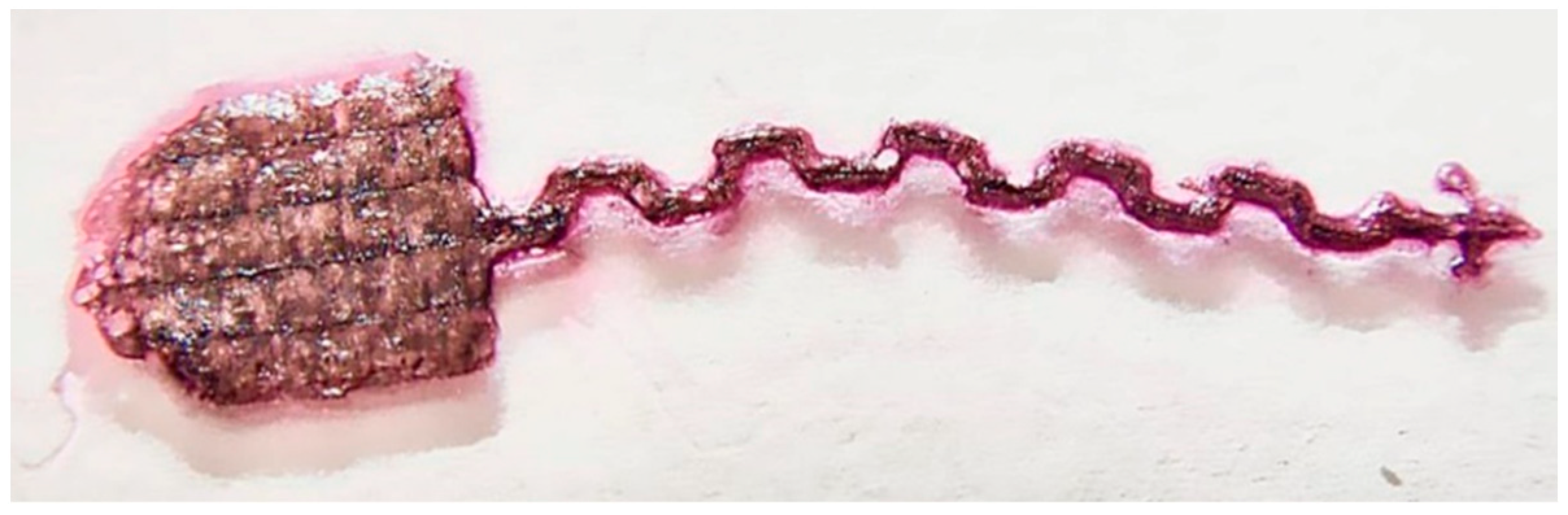 Maintaining a temperature of 28 °C allowed not only for uniform polymerization, but also for the creation of complex structures (Figure 6), which had not previously been possible to create.