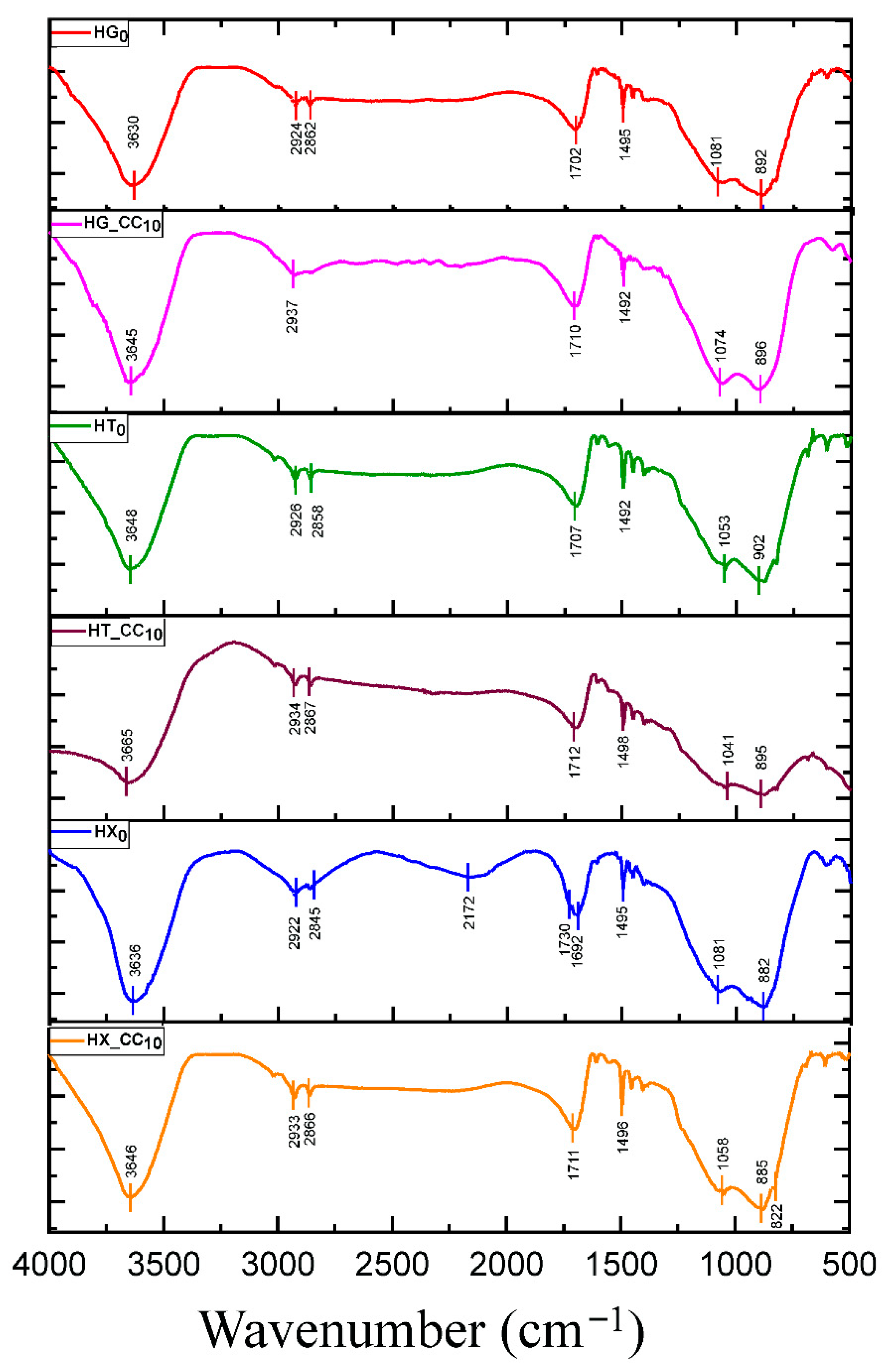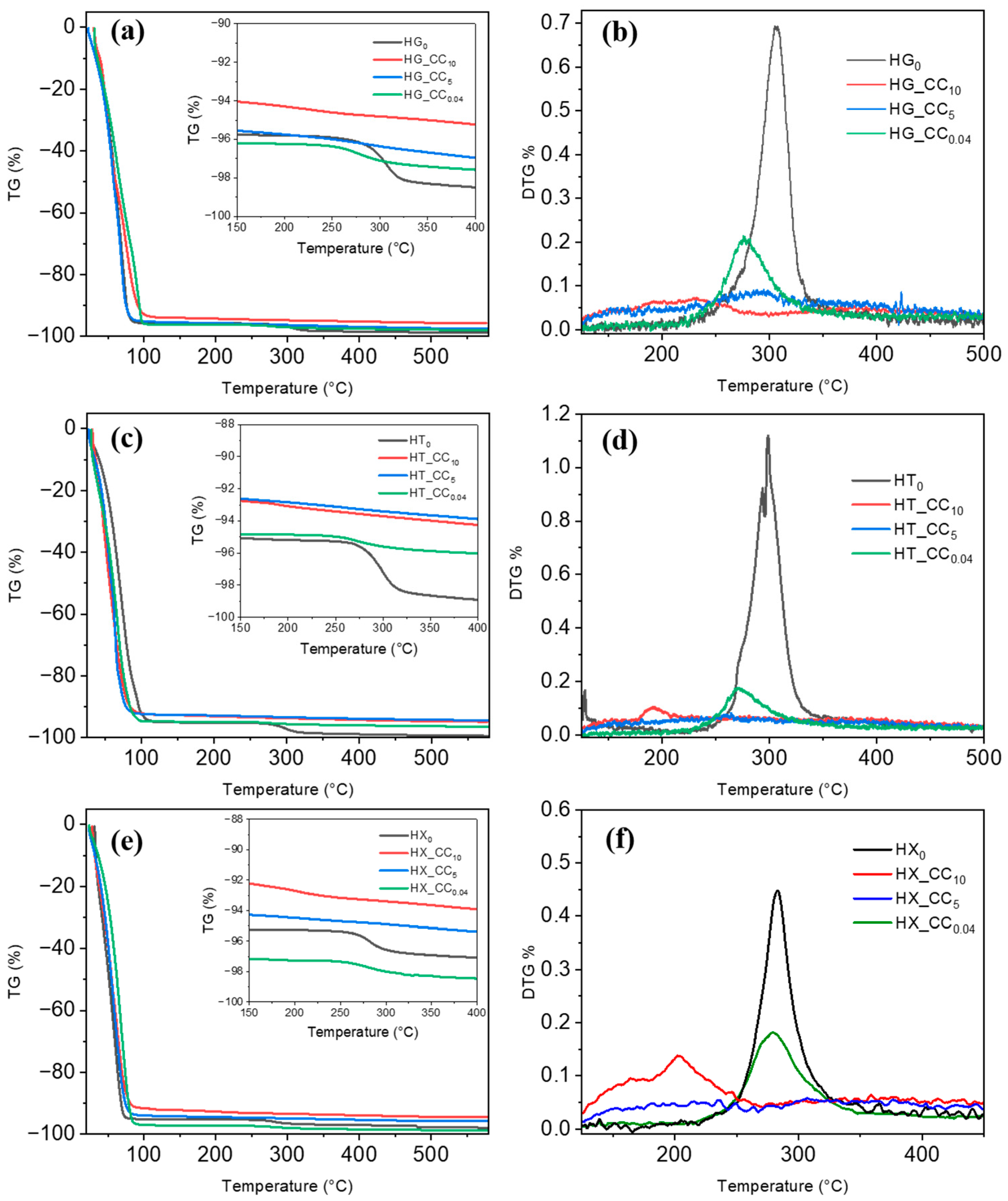 2.2.3. Composite Hydrogels (HG_CC, HT_CC, and HX_CC Series)