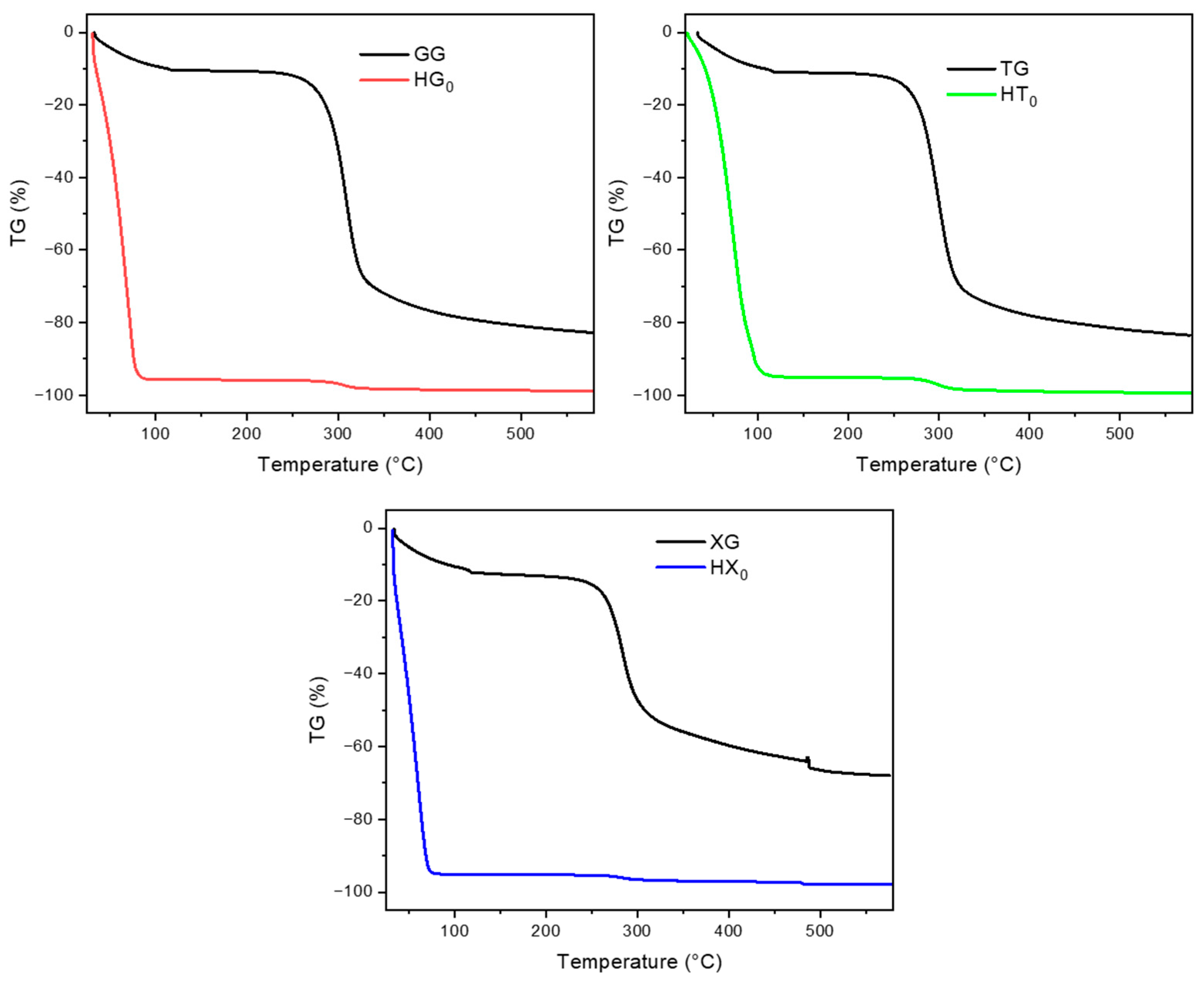 2.2.1. Pure Gum Hydrogels (HG, HT, and HX)