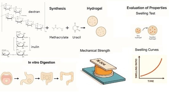 - Vervoort, L.; Van den Mooter, G.; Augustijns, P.; Busson, R.; Toppet, S.; Kinget, R. Inulin Hydrogels as Carriers for Colonic Drug Targeting: I. Synthesis and Characterization of Methacrylated Inulin and Hydrogel Formation. Pharm. Res. 1997, 14, 1730–1737. [Google Scholar] [CrossRef]