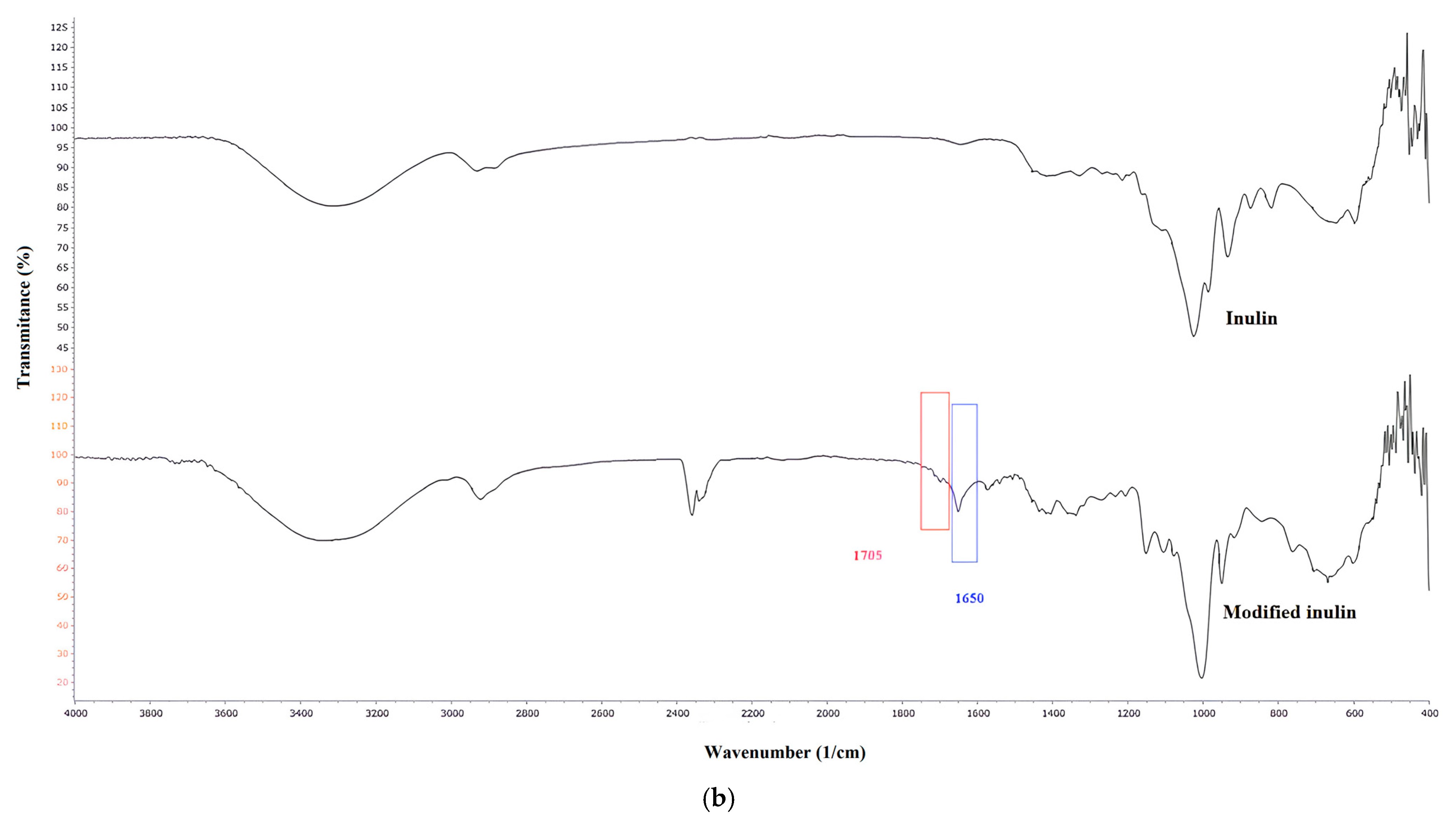 - Afinjuomo, F.; Barclay, T.G.; Song, Y.; Parikh, A.; Petrovsky, N.; Garg, S. Synthesis and Characterization of a Novel Inulin Hydrogel Crosslinked with Pyromellitic Dianhydride. React. Funct. Polym. 2019, 134, 104–111. [Google Scholar] [CrossRef]
