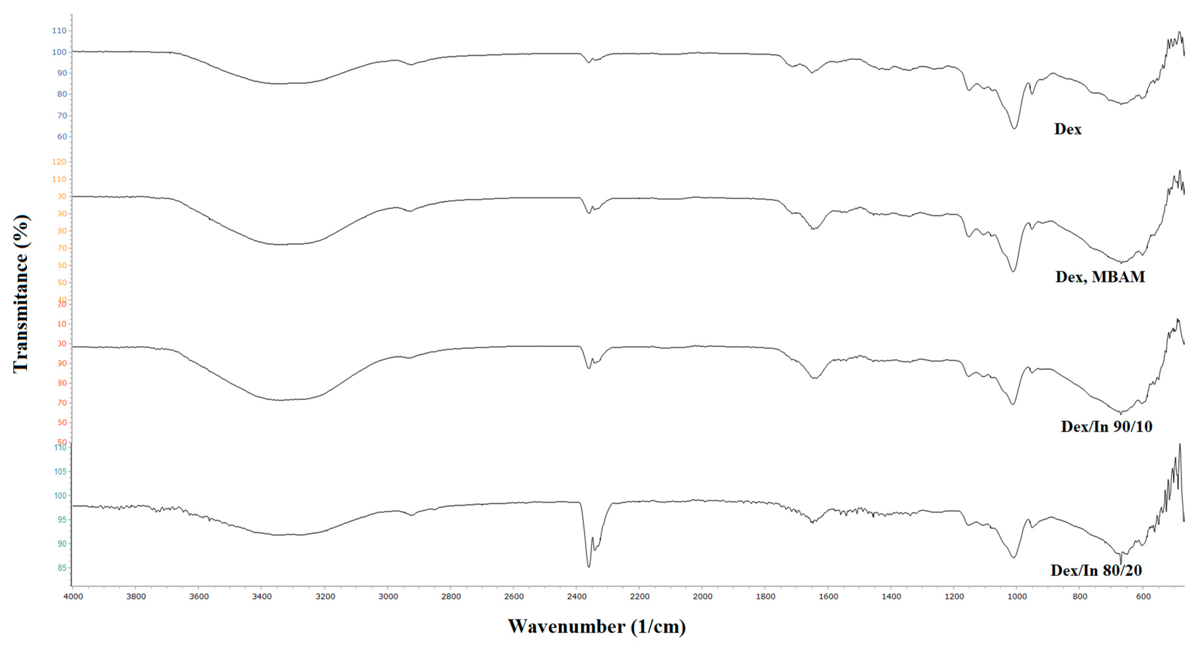4.3. Infrared Spectroscopy with Fourier Transformation (FTIR) Analysis