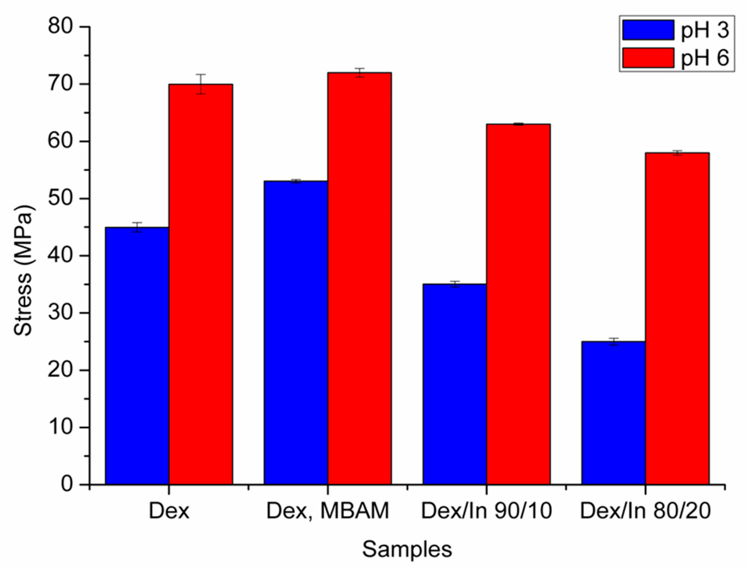 - Paoletti, L.; Ferrigno, G.; Zoratto, N.; Secci, D.; Di Meo, C.; Matricardi, P. Reinforcement of Dextran Methacrylate-Based Hydrogel, Semi-IPN, and IPN with Multivalent Crosslinkers. Gels 2024, 10, 773. [Google Scholar] [CrossRef]