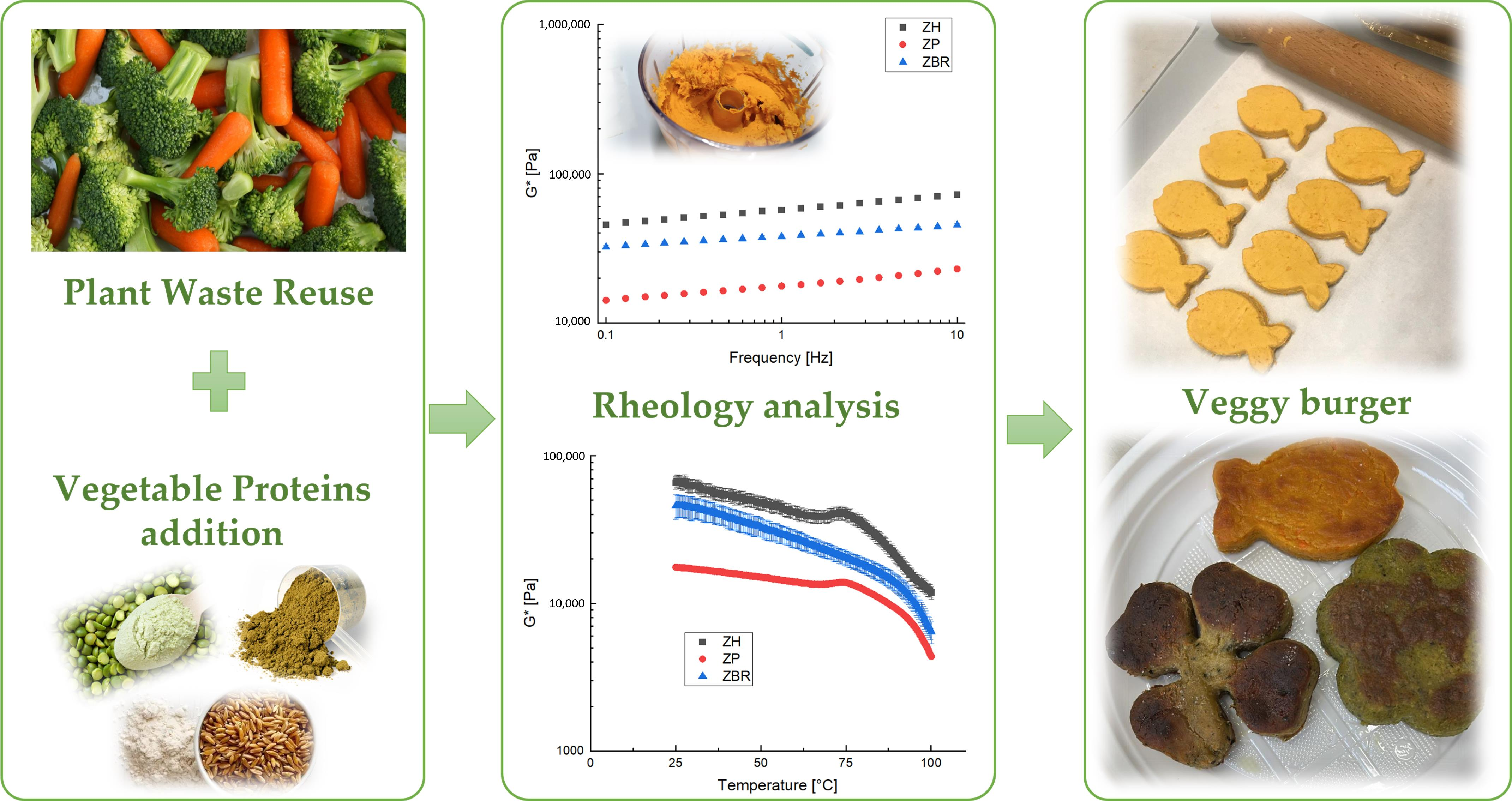 For the study, vegetable burger doughs were prepared using vegetable cuttings sourced from nearby companies. Vegetable proteins were utilized to structure the preparations, while citrus fiber was employed to achieve a suitable consistency.