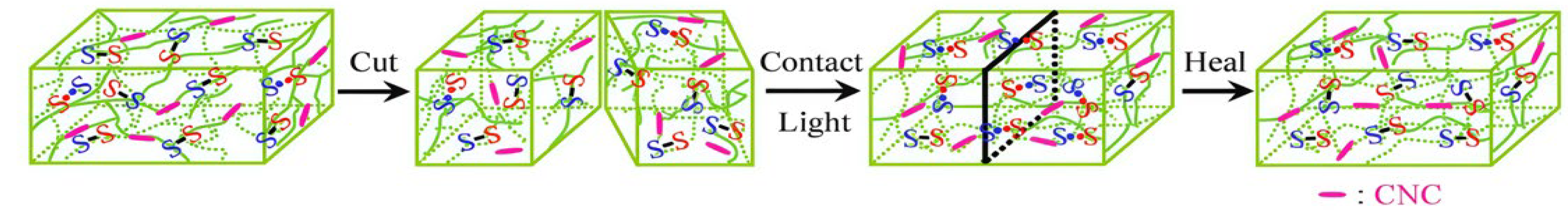 - Li, W.; Lu, S.; Zhao, M.; Lin, X.; Zhang, M.; Xiao, H.; Liu, K.; Huang, L.; Chen, L.; Ouyang, X.; et al. Self-healing cellulose nanocrystals-containing gels via reshuffling of thiuram disulfide bonds. Polymers 2018, 10, 1392. [Google Scholar] [CrossRef]