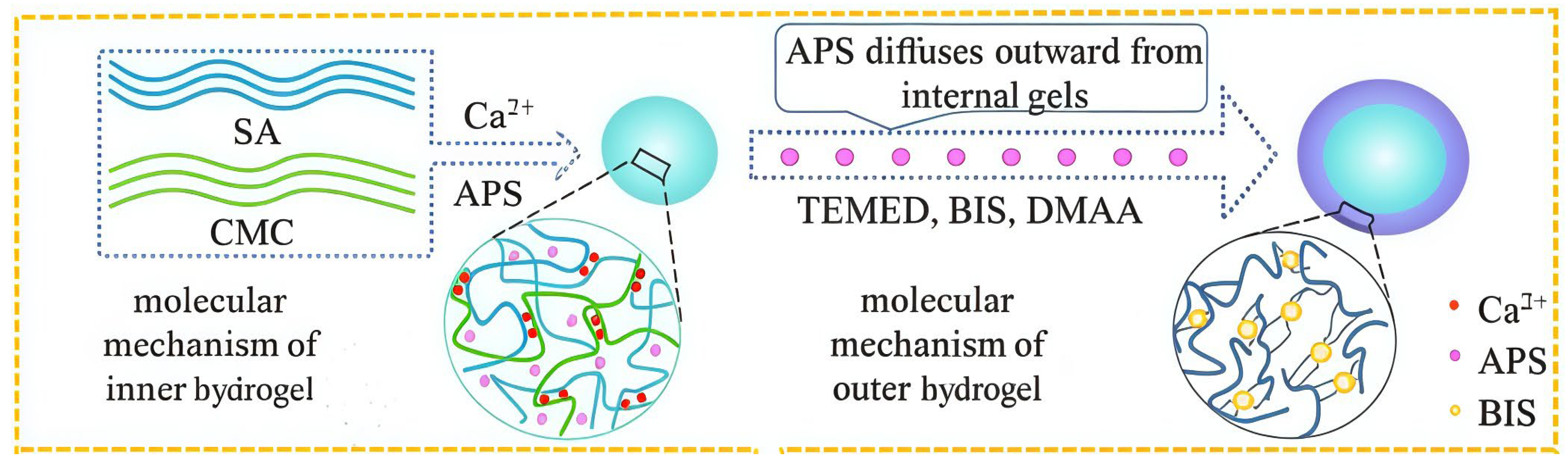 - Hu, Y.; Hu, S.; Zhang, S.; Dong, S.; Hu, J.; Kang, L.; Yang, X. A double-layer hydrogel based on alginate-carboxymethyl cellulose and synthetic polymer as sustained drug delivery system. Sci. Rep. 2021, 11, 9142. [Google Scholar] [CrossRef] [PubMed]