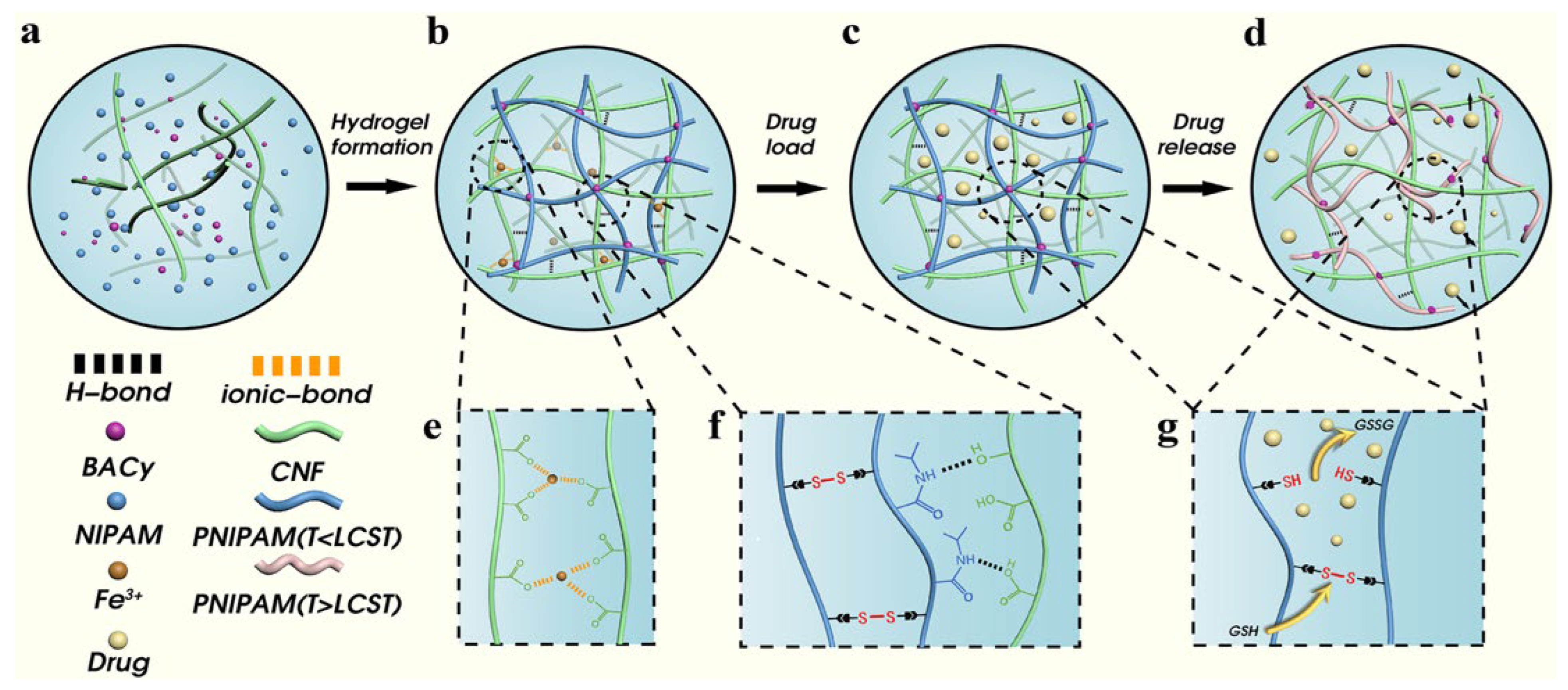 - Zong, S.; Wen, H.; Lv, H.; Li, T.; Tang, R.; Liu, L.; Jiang, J.; Wang, S.; Duan, J. Intelligent hydrogel with both redox and thermo-response based on cellulose nanofiber for controlled drug delivery. Carbohydr. Polym. 2022, 278, 118943. [Google Scholar] [CrossRef]