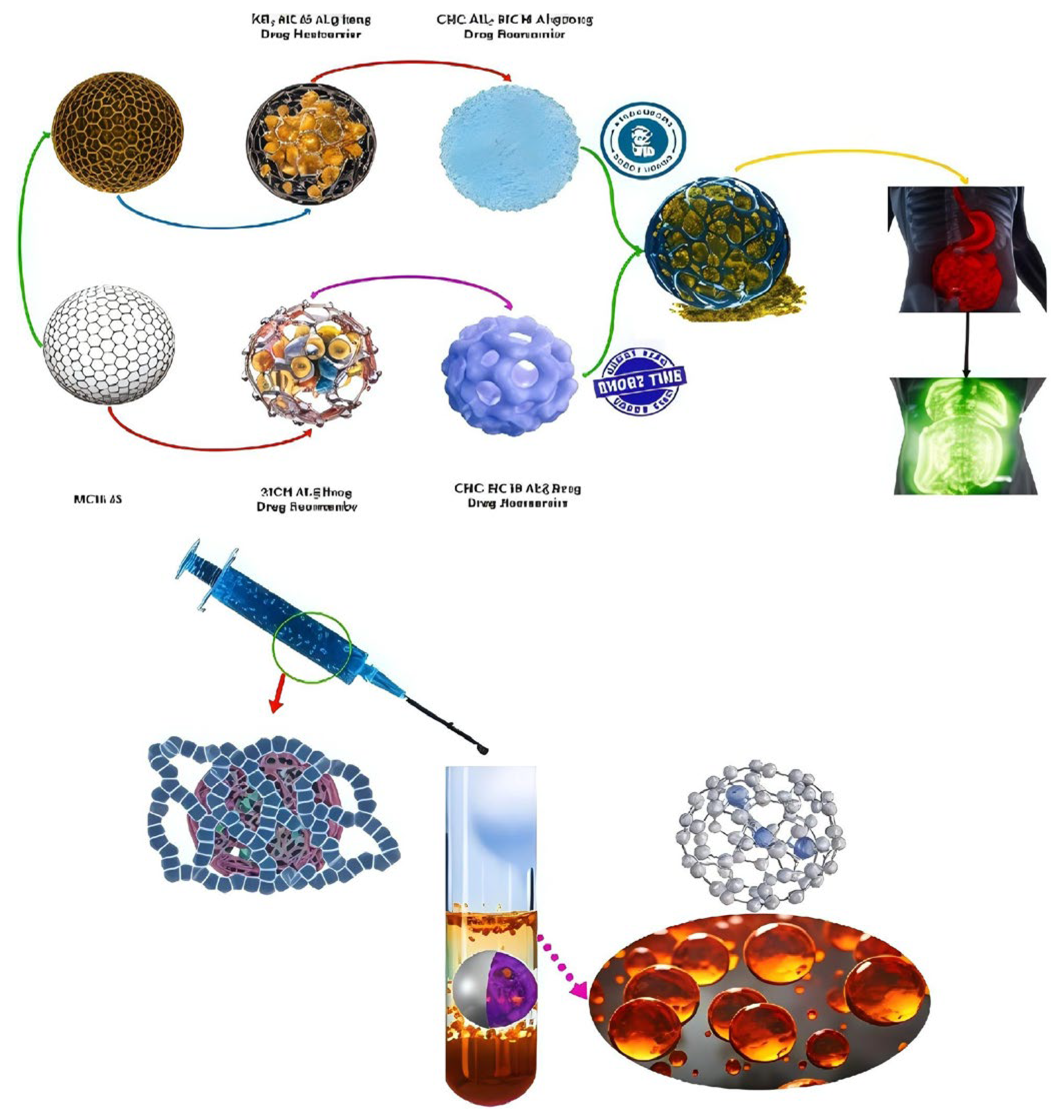 - Xia, X.; Zhang, Z.; He, Z.; Xu, Z.; Chen, L.; Huang, F.; Xiang, X. Alginate/sodium carboxymethyl cellulose nanocomposite hydrogels loaded with berberine-rosmarinic acid nanoparticles: pH-responsive release for enhanced acid stability and colon-targeted delivery. Int. J. Biol. Macromol. 2025, 328, 147629. [Google Scholar] [CrossRef] [PubMed]