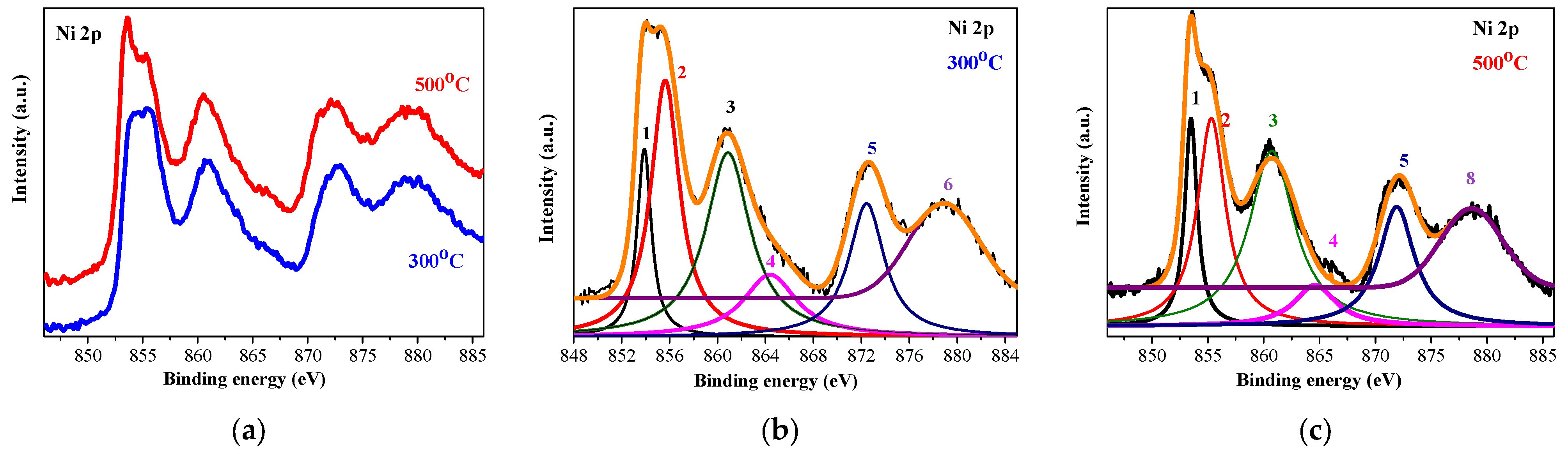 - Zou, B.; Wang, L.; Lin, J. The electronic structures of NiO NPs coated with stearates. Solid State Commun. 1995, 94, 847–850. [Google Scholar] [CrossRef]