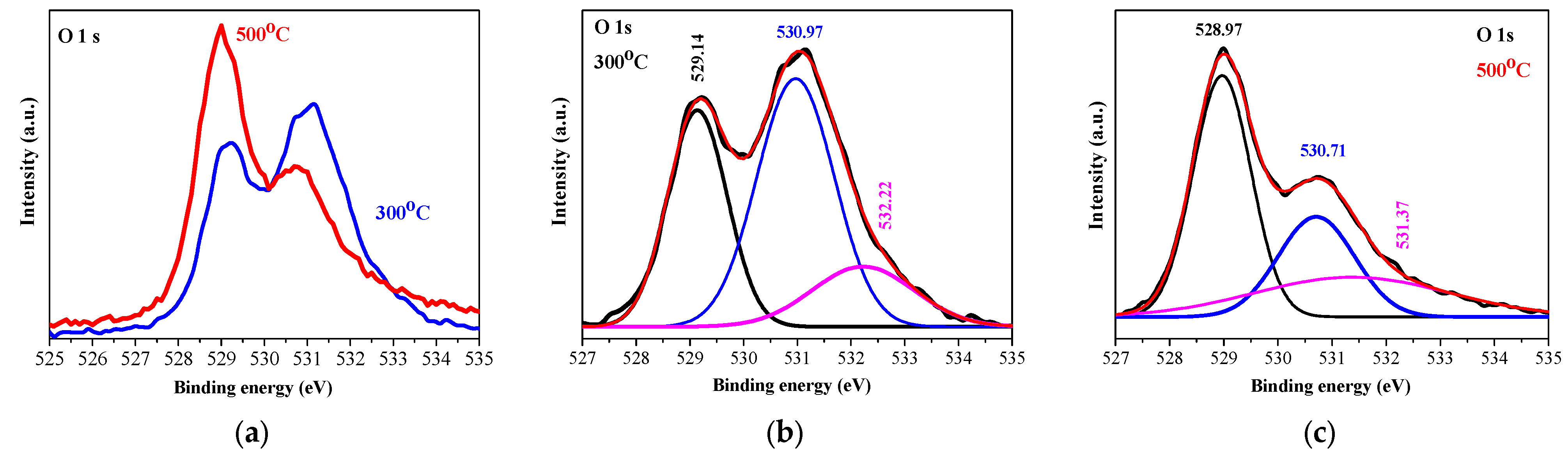 - Yang, P.; Li, L.; Yu, S.; Zheng, H.; Peng, W. The annealing temperature and films thickness effect on the surface morphology, preferential orientation and dielectric property of NiO films. Appl. Surf. Sci. 2019, 493, 396–403. [Google Scholar] [CrossRef]