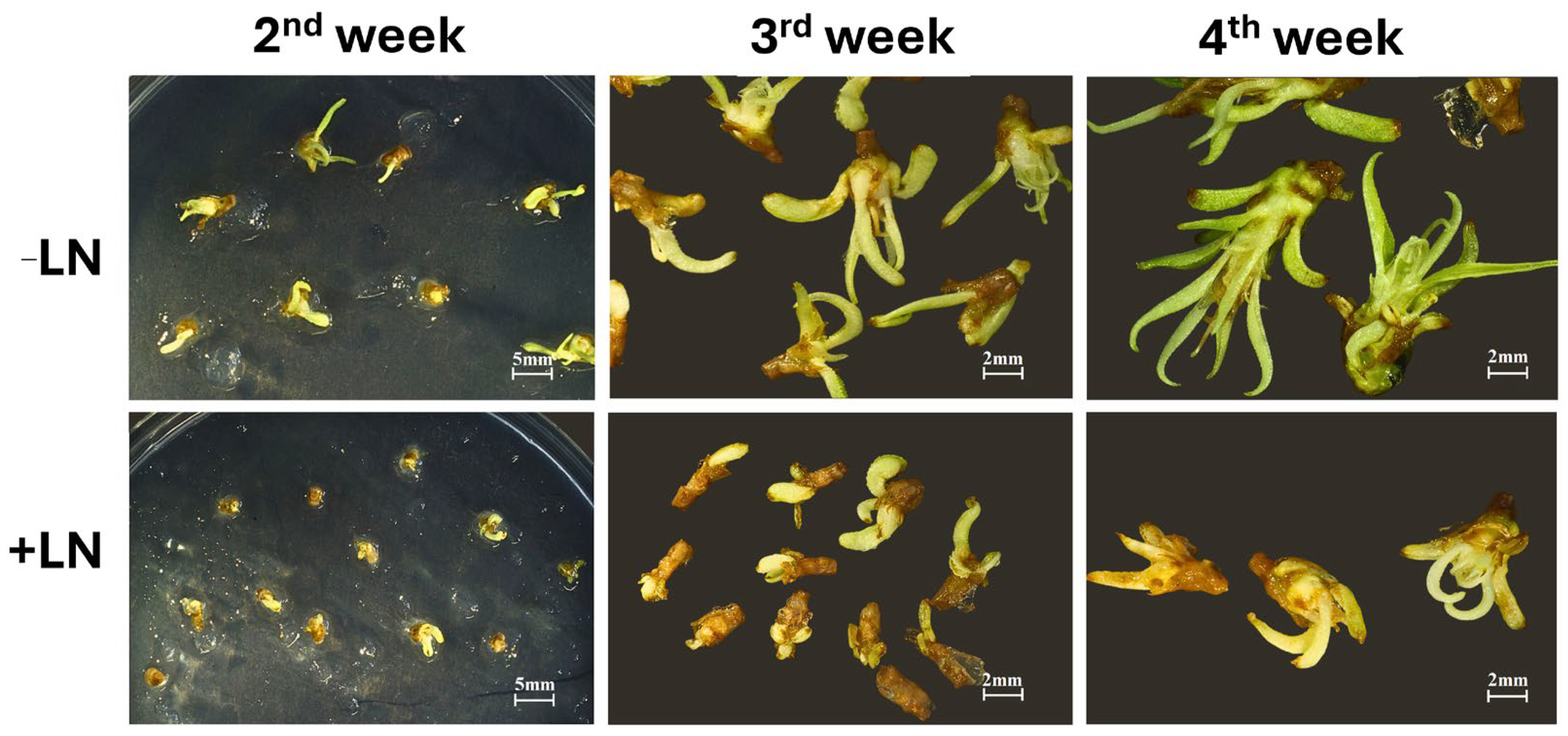 49]. After two weeks of initial culture, explants were transferred to standard medium and incubated under the same conditions as the stock cultures.