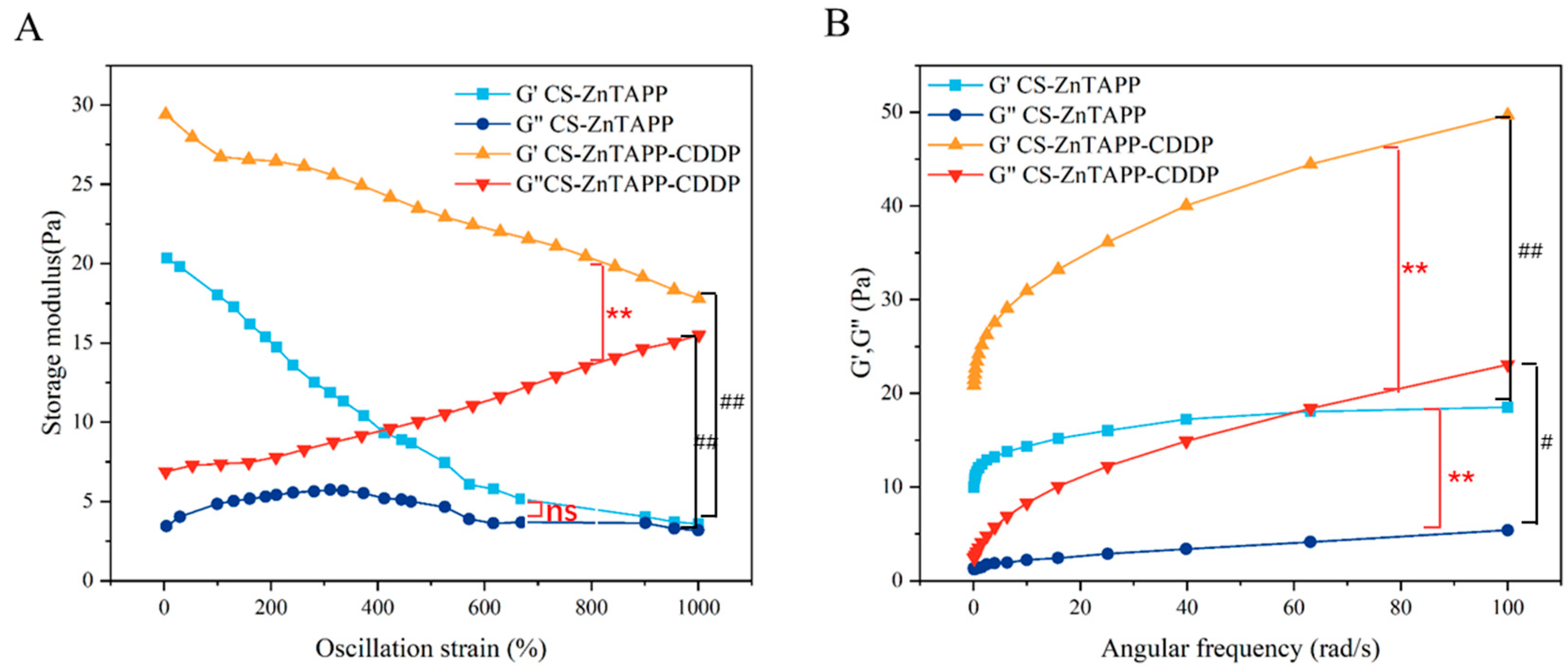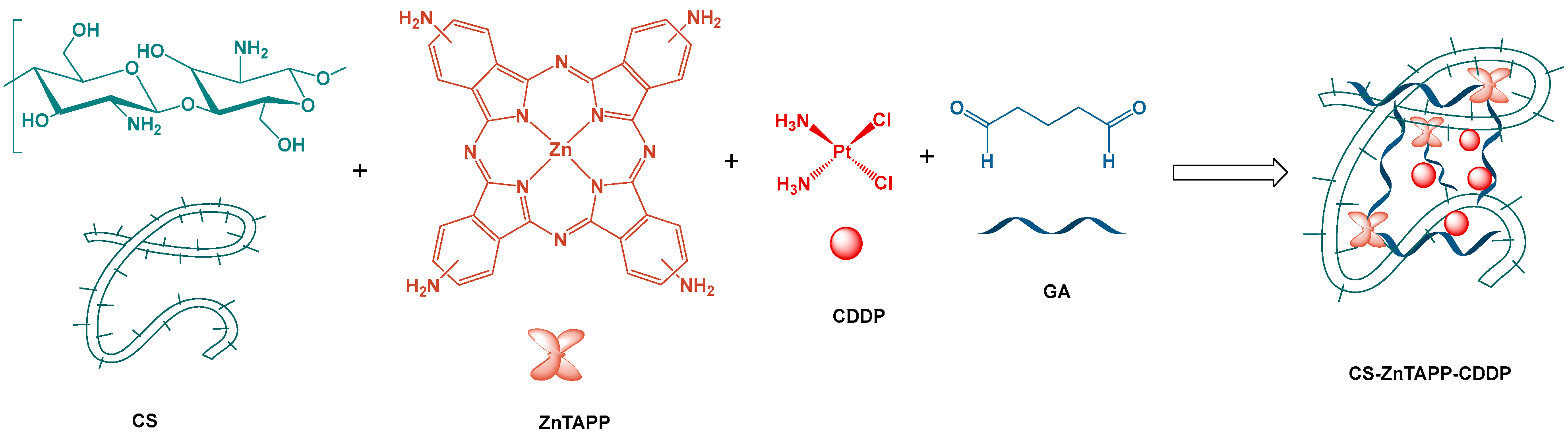 4.2. Synthesis of CS-ZnTAPP-CDDP Hydrogel