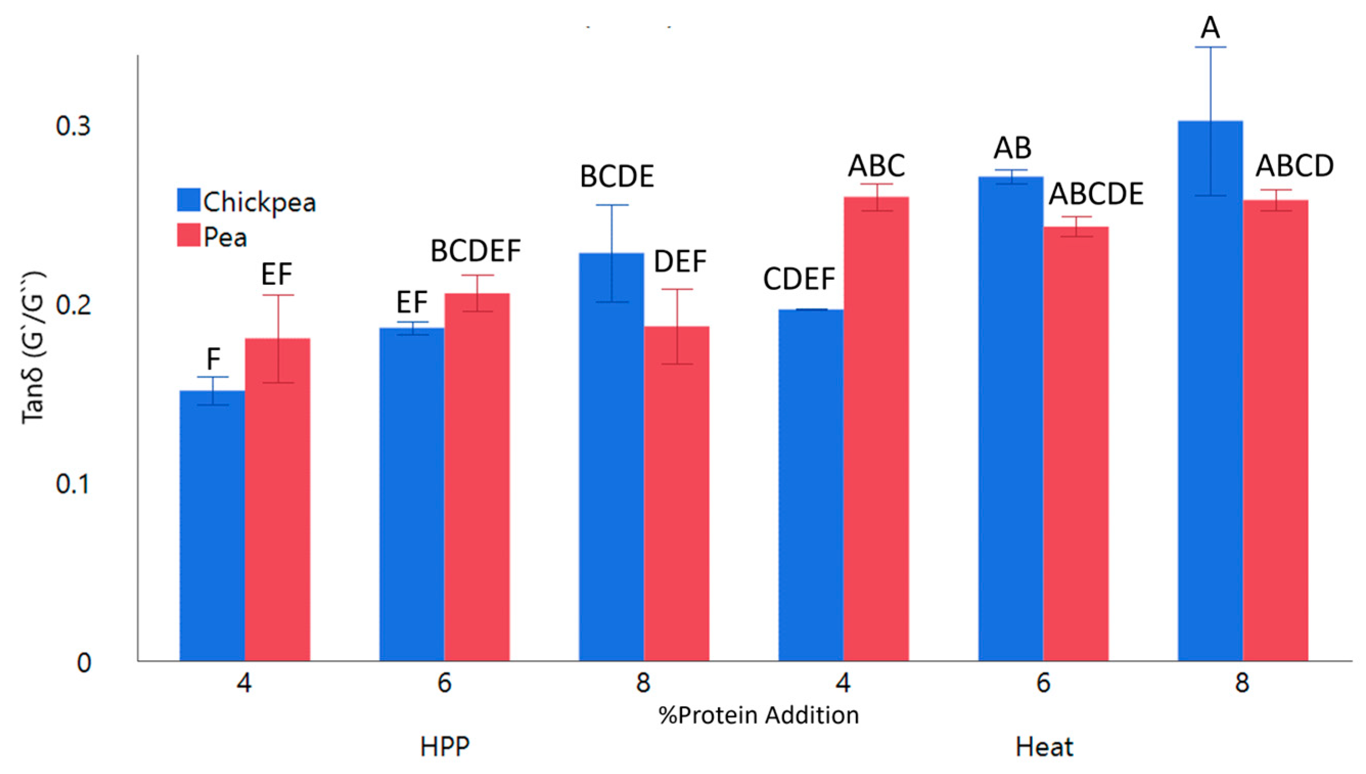 - Zhang, S.; Han, J.; Chen, L. Fabrication of Pea Protein Gels with Modulated Rheological Properties Using High Pressure Processing. Food Hydrocoll. 2023, 144, 109002. [Google Scholar] [CrossRef]