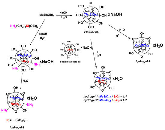 - Meshkov, I.B.; Mazhorova, N.G.; Bakirov, A.V.; Vasil’ev, S.G.; Kalinina, A.A.; Bystrova, A.V.; Muzafarov, A.M. Evolution of Methylsilsesquioxane: From Hydrolytic Polycondensation Product to Xerogel. Polymers 2025, 17, 279. [Google Scholar] [CrossRef] [PubMed]