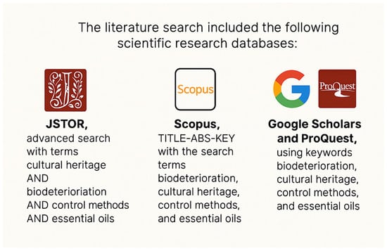 - Palla, F.; Bruno, M.; Mercurio, F.; Tantillo, A.; Rotolo, V. Essential oils as natural biocides in conservation of cultural heritage. Molecules 2020, 25, 730. [Google Scholar] [CrossRef]