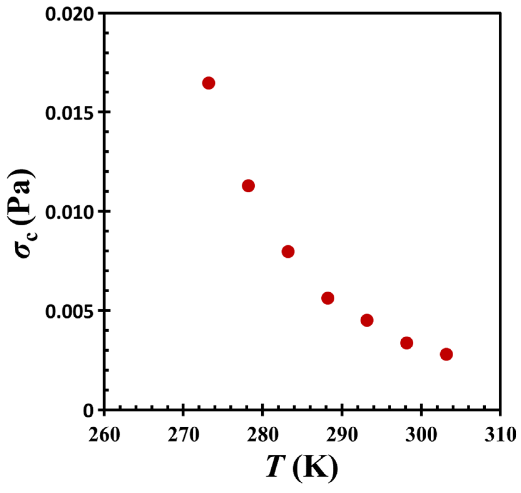 a is the particle radius. In this colloidal suspension, the mobile entities are fumed silica aggregates, with diameters on the order of several hundred nanometers. Considering the viscosity of the dispersion medium (or DOP) at 5 °C is approximately 0.22 Pa·s, the estimated frequency (