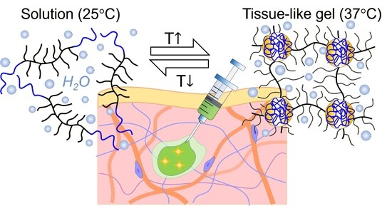 - Yang, J.-A.; Yeom, J.; Hwang, B.W.; Hoffman, A.S.; Hahn, S.K. In Situ-Forming Injectable Hydrogels for Regenerative Medicine. Prog. Polym. Sci. 2014, 39, 1973–1986. [Google Scholar] [CrossRef]
