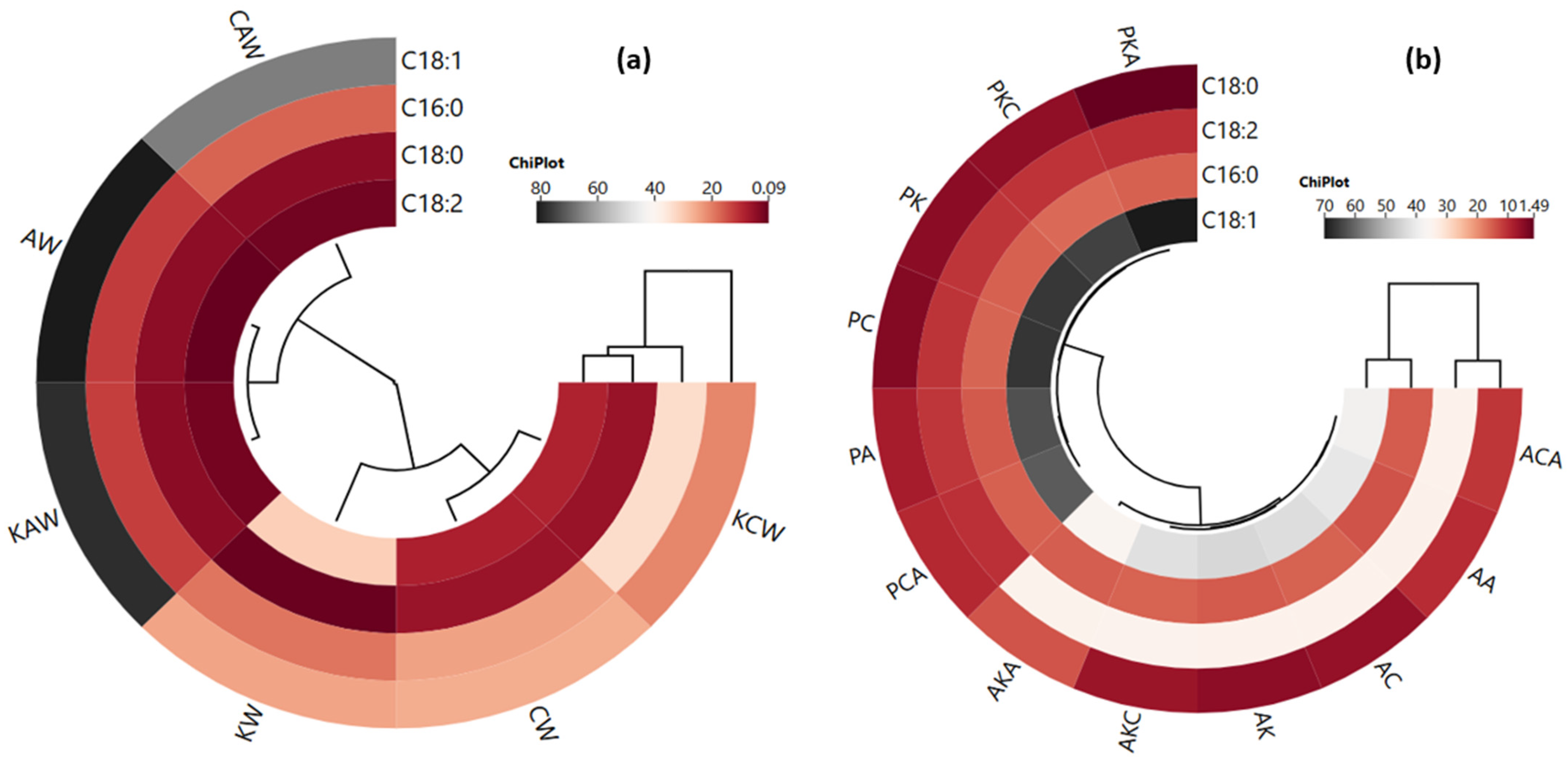 | AKC | 48.89 ± 0.09 b | 12.68 ± 0.11 d | 74.68 ± 0.03 a | - | 37.96 ± 0.07 d | 12.83 ± 0.21 c | 51.18 ± 0.15 d | - | - | - |