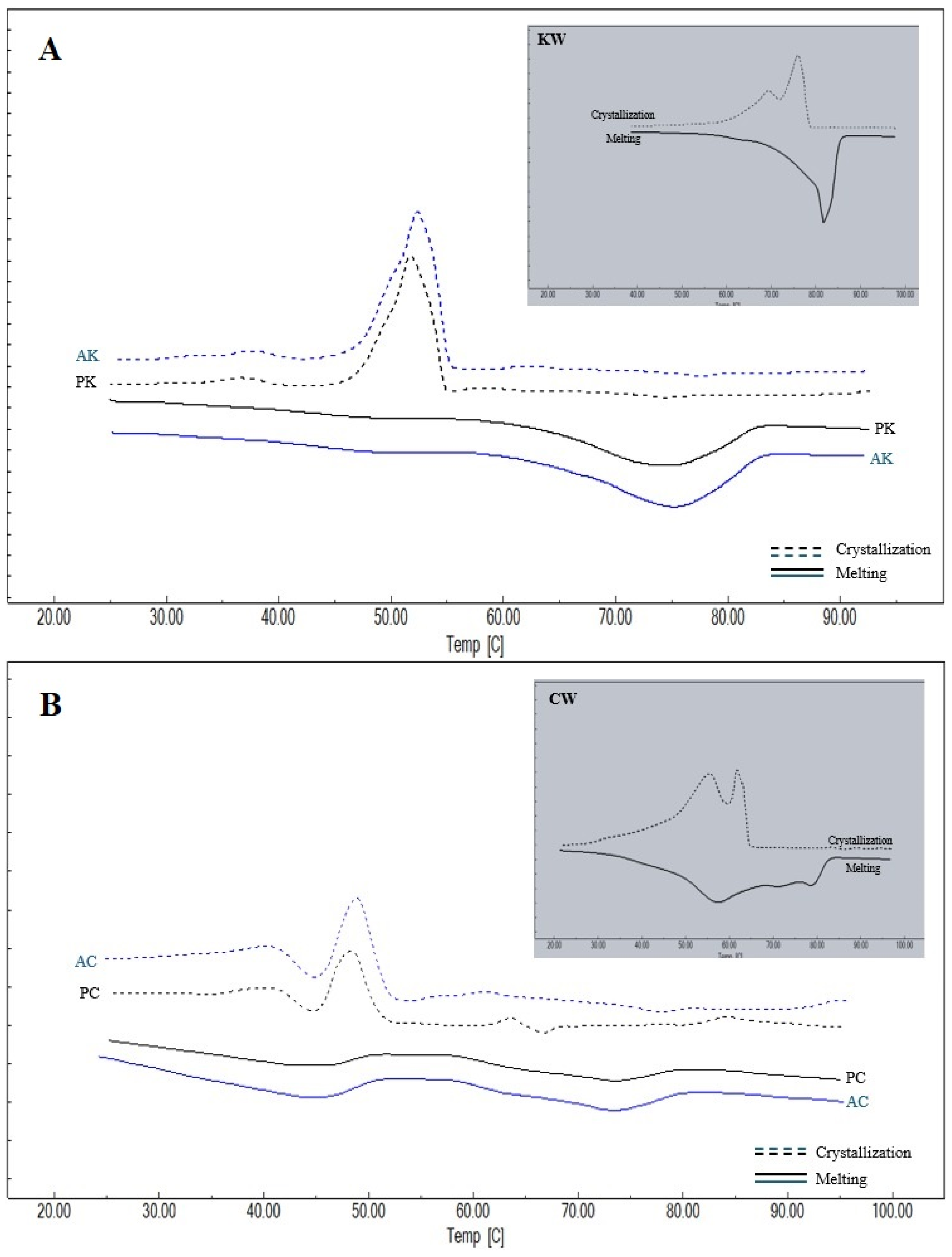 - Hassim, N.A.M.; Kanagaratnam, S.; Huey, S.M.; Ismail, N.H.; Hamid, R.A.; Miskandar, M.H.; Sofian-Seng, N.-S. Characterıstıcs of sunflower wax, carnauba wax and beeswax ın palm superoleın blended oil. J. Oil Palm Res. 2023, 35, 694–712. [Google Scholar] [CrossRef]