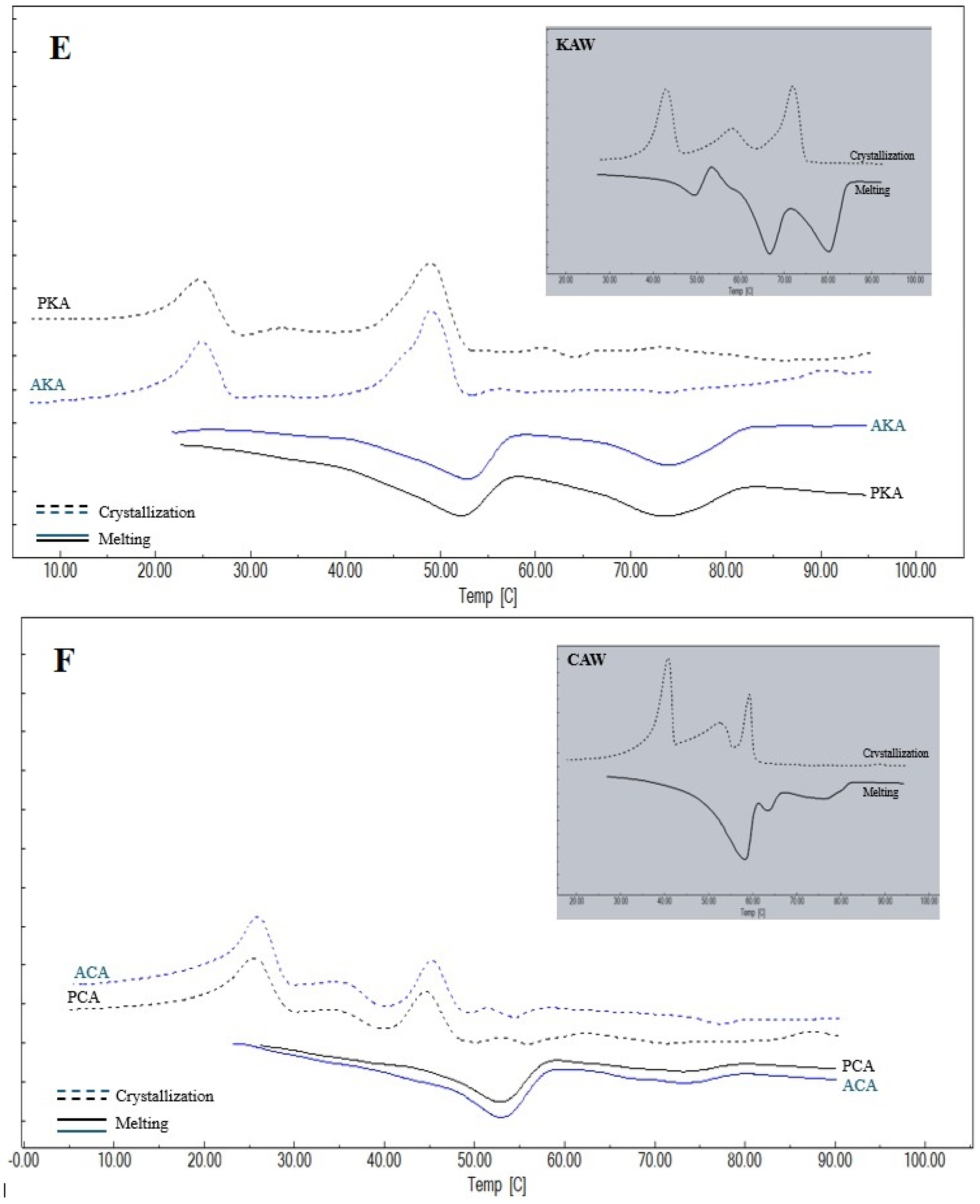- Blake, A.I.; Co, E.D.; Marangoni, A.G. Structure and physical properties of plantwax crystal networks and their relationship to oil binding capacity. J. Am. Oil Chem. Soc. 2014, 91, 885–903. [Google Scholar] [CrossRef]