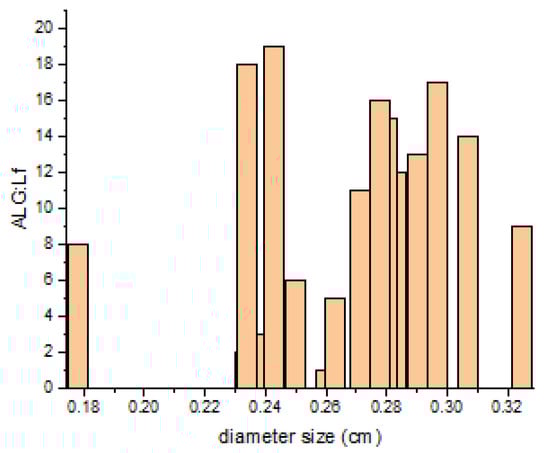 In the SEM images of the freeze-dried particles (Figure 10), a difference in the particles’ shape was observed: the ALG samples show a round shape, while the Lf-loaded ones have a more elongated shape, probably due to the presence of the encapsulated protein.