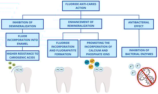 - Nassar, Y.; Brizuela, M. The Role of Fluoride on Caries Prevention. In StatPearls [Internet]; StatPearls Publishing: Treasure Island, FL, USA, 2024. [Google Scholar]