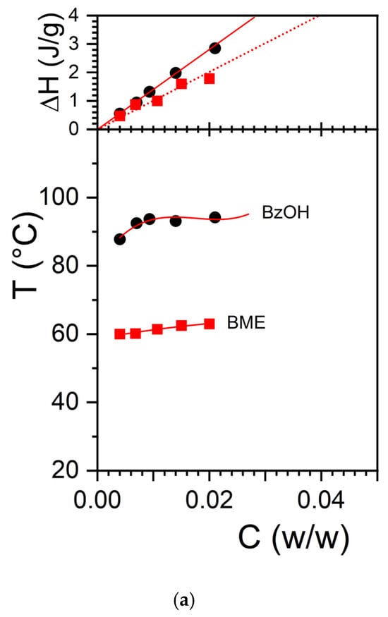 The knowledge of their molecular structure is a topical issue [5,6,7,8]. One specific point raised quite recently concerns the formation of molecular compounds from the co-crystallization of the organogelator and the solvent [5,6]. The expression Molecular compound is the generic terminology for systems that combine two or more molecules under a well-defined stoichiometry, independently of the way they interact. This term is customary in the nomenclature used in temperature–concentration phase diagrams [17]. In practice, several names can designate these systems depending on the type of interactions: crystallo-solvates, molecular complexes, inclusion compounds, intercalates, guest–host compounds, and the like [17,18,19]. Systems formed through hydrogen bonds are designated as molecular complexes, a situation that will be encountered in this paper.