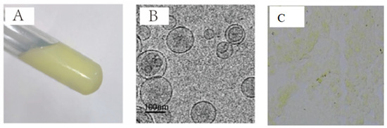 Morphology of KAE-LP: (A) exterior appearance; (B) cryo-EM diagram; (C) optical micrograph.