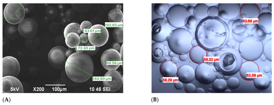| Polymer Microspheres | Initial Size (d)/μm | Size After 8 h Swelling/μm | Size After 24 h Swelling/μm | Size After 72 h Swelling/μm | Volumetric Swelling (D3/d3) |