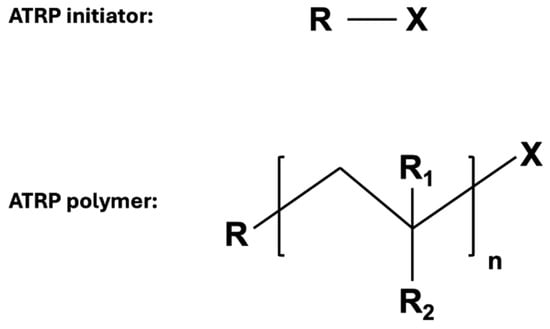 This polymerization technique synthesizes a polymer from a halogenated molecule (i.e., initiator). This polymerization initiator can react with a transition metal catalyst. This reversible redox reaction generates a reactive radical central. The polymers formed using this method have a low PDI and carry the initiator at the α-chain and the halogen at the Ω-chain end (Figure 2) [11].