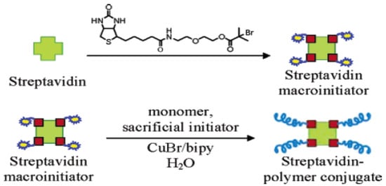 - Bontempo, D.; Maynard, H.D. Streptavidin as a Macroinitiator for Polymerization: In Situ Protein-Polymer Conjugate Formation. J. Am. Chem. Soc. 2005, 127, 6508–6509. [Google Scholar] [CrossRef] [PubMed]