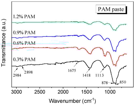 FTIR results of paste with different PAM content.