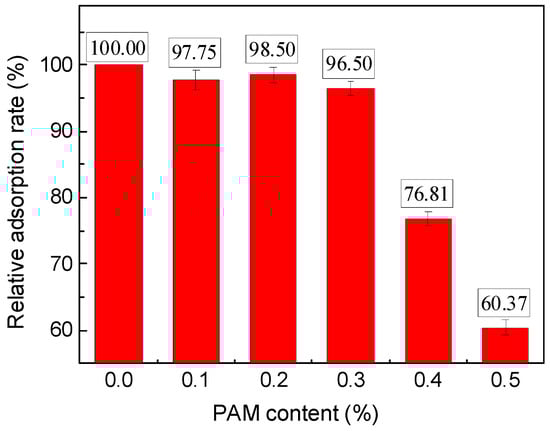 where represents the relative adsorption rate of the PAM gel at the corresponding PAM dosage; , are the total organic carbon contents of the PAM pure solution, the reference slurry, and the slurry with the corresponding PAM content, respectively.
