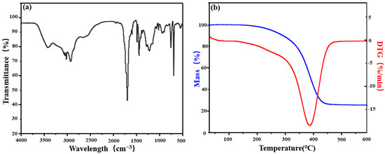 The FTIR (a) and TG (b) curves of acrylic resin.