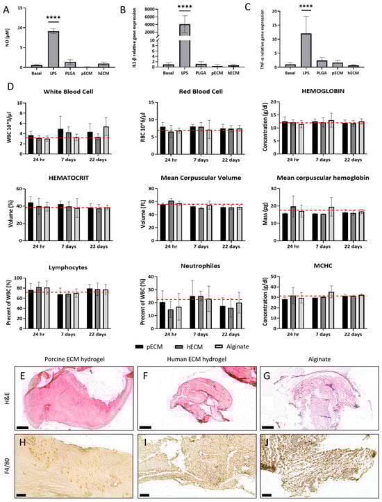 4.15. ECM Hydrogel Immunogenicity In Vivo