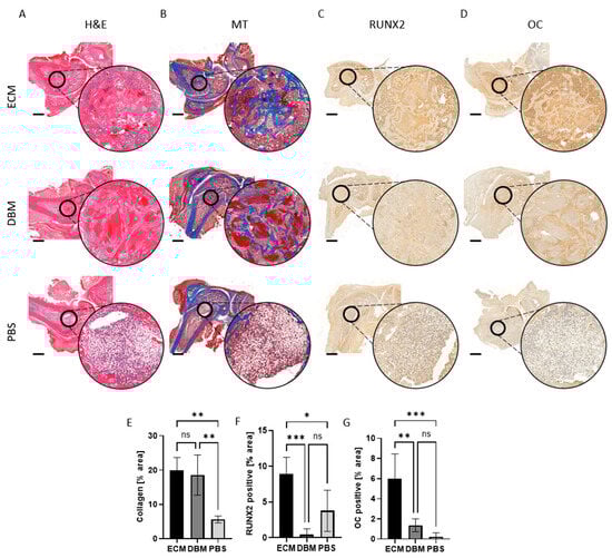 - Ventura, R.D.; Padalhin, A.R.; Kim, B.; Park, M.; Lee, B.T. Evaluation of bone regeneration potential of injectable extracellular matrix (ECM) from porcine dermis loaded with biphasic calcium phosphate (BCP) powder. Mater. Sci. Eng. C 2020, 110, 110663. [Google Scholar] [CrossRef] [PubMed]