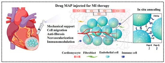 - Fang, J.; Koh, J.; Fang, Q.; Qiu, H.; Archang, M.M.; Hasani-Sadrabadi, M.M.; Miwa, H.; Zhong, X.; Sievers, R.; Gao, D.W.; et al. Drug delivery: Injectable drug-releasing microporous annealed par ticle scaffolds for treating myocardial infarction. Adv. Funct. Mater. 2020, 30, 2070289. [Google Scholar] [CrossRef]