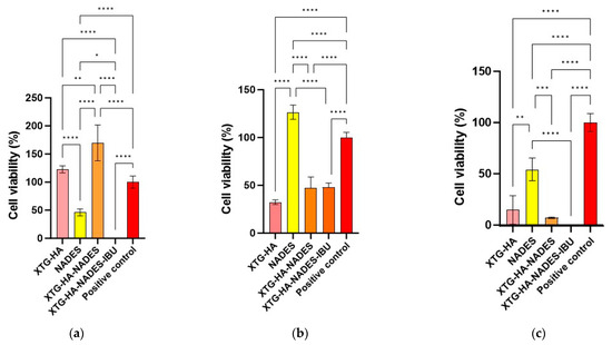 Hyaluronic acid (HA), a naturally occurring glycosaminoglycan found in various connective tissues [42], is recognized for its remarkable water-retaining capacity, biocompatibility, and ability to promote tissue hydration, repair, and regeneration. HA’s properties make it particularly valuable in pharmaceutical formulations, where it enhances the bioadhesive characteristics of gels, ensuring the prolonged residence time and sustained release of drugs at the site of application [39,42]. When combined, XTG and HA form a robust gel network that not only supports the eutectic solvent system but also provides enhanced therapeutic potential through sustained release and strong adhesion to mucosal surfaces [43].