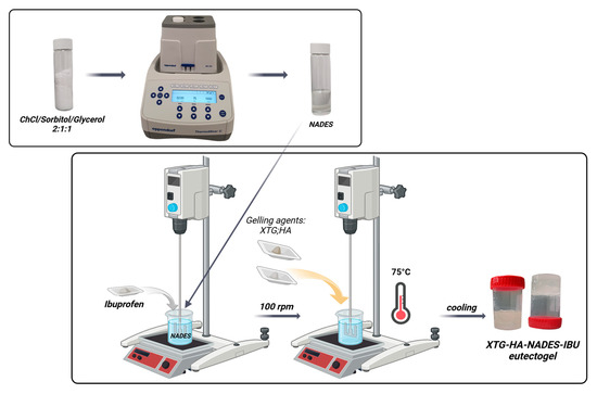 When incorporated into a gel matrix, they form eutectogels [14], hybrid systems that retain the advantages of both components [15], by combining the solubilization enhancement properties of NADESs with the structural and mechanical properties of gels [16]. This synergy of properties results in a new class of materials with significant potential across various fields [17].