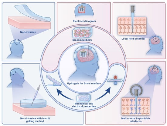 - Mingxuan, Z.; Mingming, H.; Botao, L.; Jianping, C.; Guoqiang, R.; Yinchao, Z.; Jinxiu, G.; Liping, Z.; Shunying, Z.; Zhaoxiang, P.; et al. Recent progress of hydrogels in brain-machine interface. Soft Sci. 2024, 4, 39. [Google Scholar] [CrossRef]