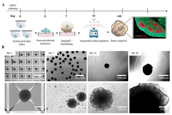 - Benito-Kwiecinski, S.; Lancaster, M.A. Brain Organoids: Human Neurodevelopment in a Dish. Cold Spring Harb. Perspect. Biol. 2020, 12, 035709. [Google Scholar] [CrossRef]