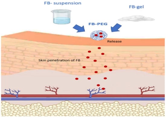 FB demonstrates stronger inhibitory effects on the COX-1 enzyme, which accounts for its adverse effects, particularly in the gastrointestinal system. With a relatively brief half-life of approximately 4 h, FB requires frequent administration [,]. These limitations highlight the need to develop pharmaceutical formulations that bypass the gastrointestinal tract, such as dermal and transdermal delivery systems.