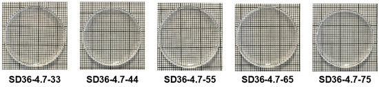 The conetwork forming reaction by the copolymerization of styrene with the MA-PDMS-MA macrocrosslinker successfully resulted in conetworks with reasonably high gel fractions in the range of 53–63% as presented in Table 1. The use of the highly reactive DVB as additional crosslinker leads to higher gel fractions in the range of 84–92% (Table 1). As displayed in Figure 1, all the conetworks are fully transparent materials regardless of their composition, demonstrating their uniformity and optical clarity.